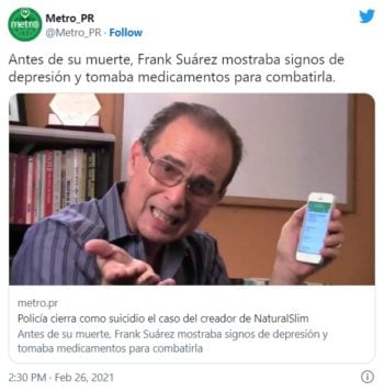 Noticieros Televisa recogió un comunicado de Natural Slim emitió sobre la muerte de su fundador que decía: «Hoy el pueblo puertorriqueño y la comunidad latinoamericana en el mundo sufren la pérdida del ilustre investigador y especialista en metabolismo y obesidad, Frank Suárez, a sus 71 años».